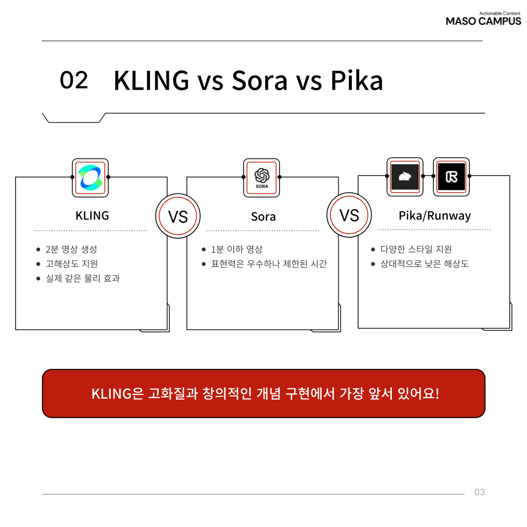 비슷한 AI 도구들과 비교해도 KLING은 확실히 뛰어나요!