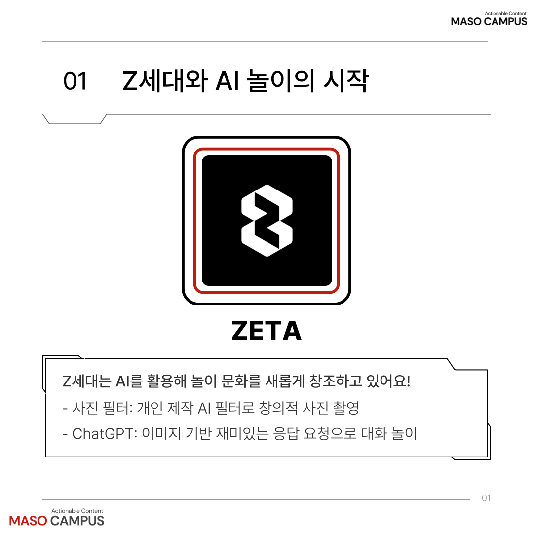 Zeta AI는 이러한 문화를 더 친근하게 만들며 Z세대와 함께 미래를 만들어가고 있답니다.