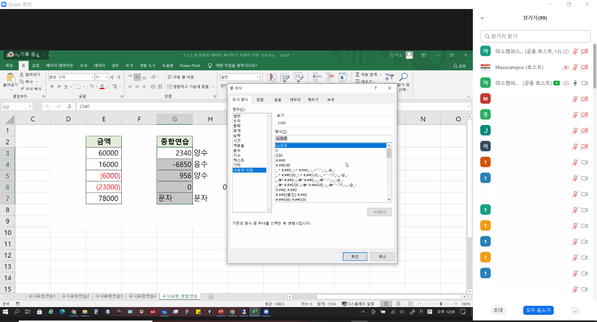 엑셀과 데이터 분석(초급) 1일차 (줌미팅 강의)
