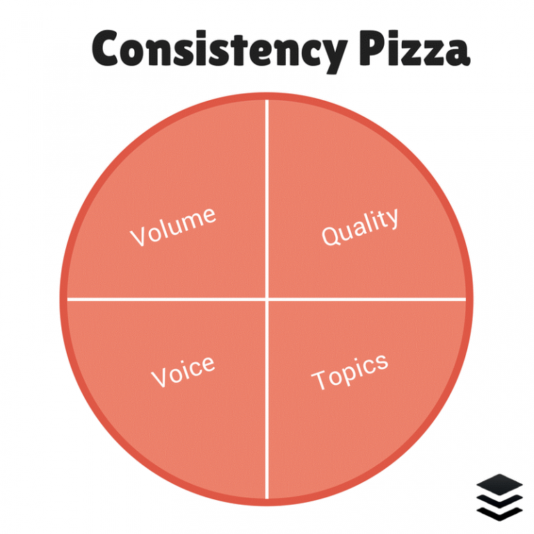 버퍼(Buffer)의 Kevan Lee는 “일관성 피자”라는 개념을 개발했는데, 기본적으로 양질의 콘텐츠가 이미 풍부하다고 가정하고, 소셜 미디어에서 돋보이기 위한 진짜 성공의 열쇠는 사실 일관성입니다.