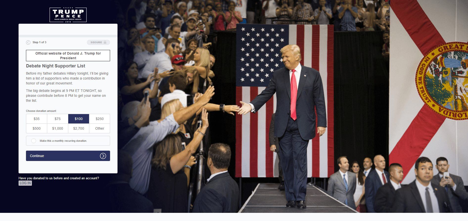이 기술은 2016년 미국 선거에서 대통령 후보 (트럼프와 클린턴)에 의해 사용되었습니다. 클린턴과 트럼프의 마케팅 팀은 랜딩 페이지에서 아래 그림과 같이 시선을 사용하여 사람들을 양식으로 유도했습니다.