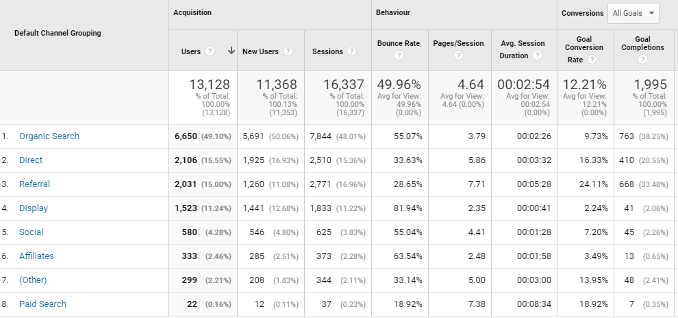 채널 보고서 분석을 시작한 다음 소스/매체에서 드릴다운하여 트래픽의 출처가 변경될 수 있도록 해야 합니다.