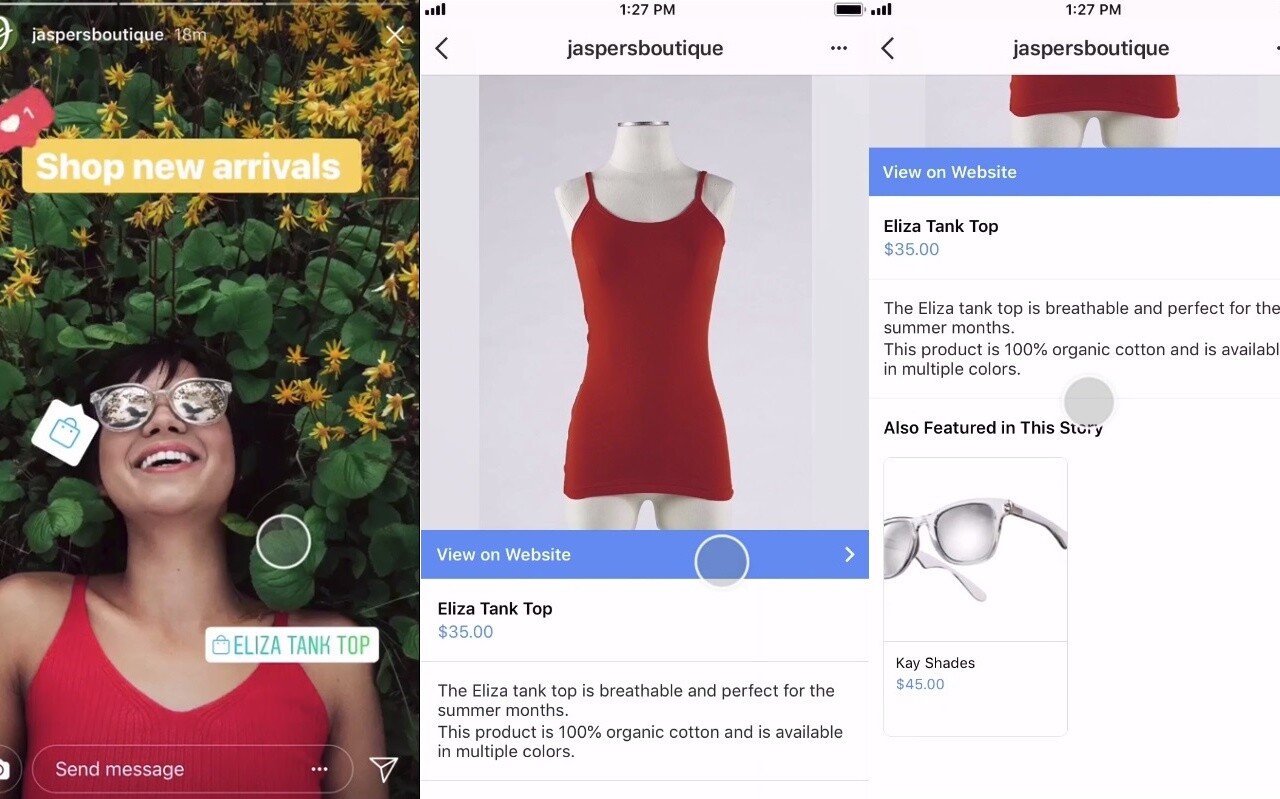이미 스토리 사용에 대해 언급했지만, 이러한 대화 요소에 링크를 포함하면 전환 프로세스가 훨씬 더 쉬워질 수 있습니다. 액션 버튼은 구매 과정을 단순화하는 또 다른 도구이며, 현재 인스타그램은 일부 비즈니스에서 게시물에 쇼핑 태그뿐만 아니라 시각적 상점 또한 만들 수 있도록 허락하고 있습니다.