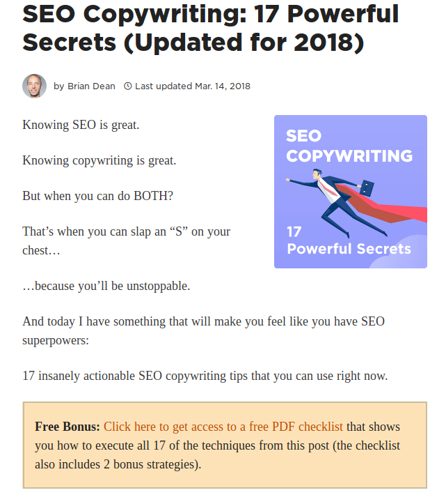 다음은 Brian Dean의 콘텐츠 업그레이드 예입니다.