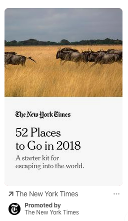 뉴욕 타임즈는 다양한 플랫폼에서 포스트 디자인으로 훌륭한 업무를 수행합니다. 여기서, 그들은 핀터레스트 상에서 멋지게 보이는 세로형 포스트에 눈에 띄는 이미지와 공유 가능한 기사를 활용합니다.