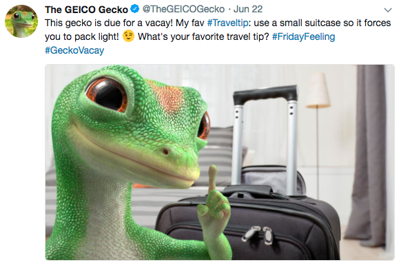 예를 들어, 게이코 도마뱀(Geico Gecko)은 가장 독특하고 인지도가 높은 브랜드 마스코트 중 하나입니다. 잠재고객이 소식을 볼 때, 그들을 웃게 만들 재미있고 유용한 콘텐츠를 기대할 수 있습니다.