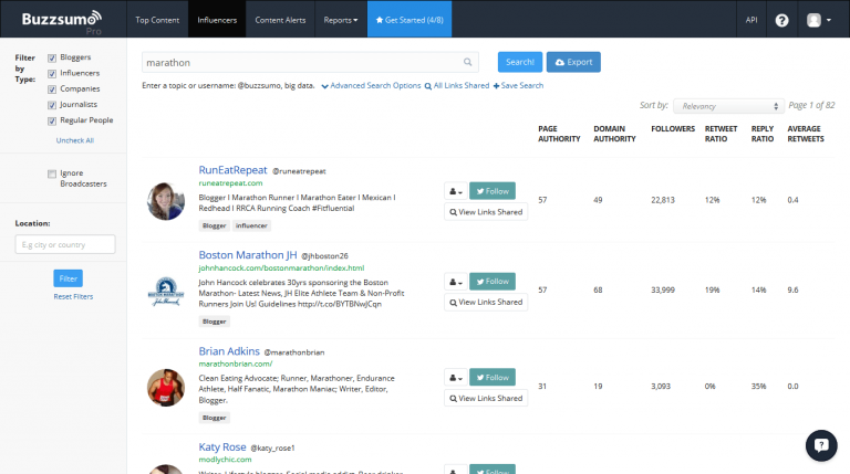 BuzzSumo와 같은 도구를 사용하여 관련 인플루엔서를 조사할 수 있습니다.