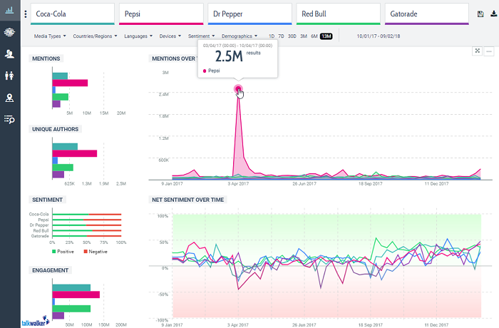 코카 콜라는 탄산 음료 정글의 절대적인 왕이지만, 펩시의 포효는 4월에 140만건의 언급과 함께 코카 콜라를 익사시켰습니다. 이러한 증가 초래 원인은 무엇입니까?