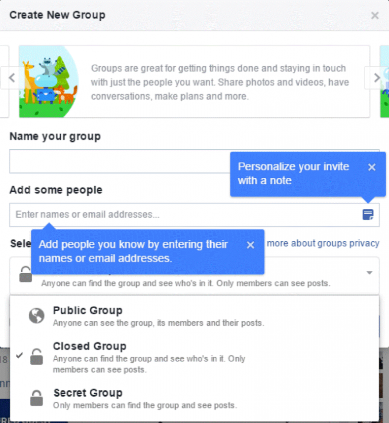 개인 프로필(비즈니스 페이지가 아님)만이 그룹에 가입 할 수 있다는 점을 명심하십시오. 여기서 비즈니스를 위해 설계된 개인 프로필을 갖는 것의 이점이 작용합니다.