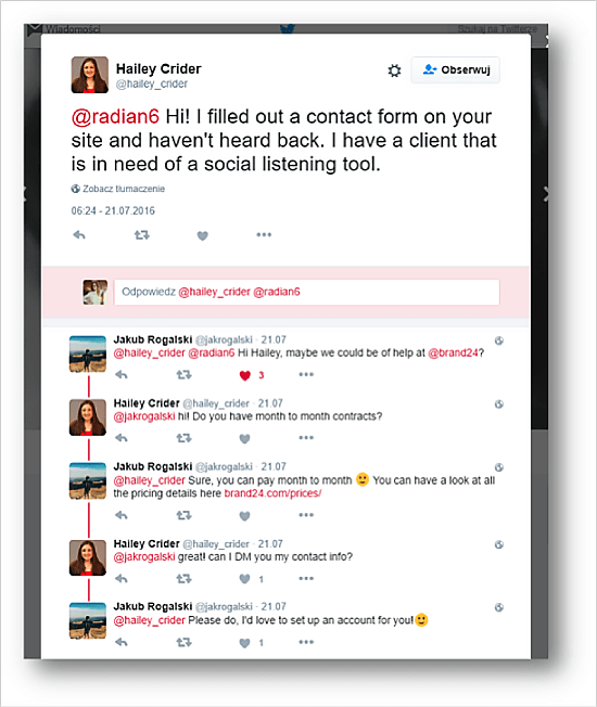 분명히 이 회사는 Radian6에 대한 언급을 추적하고 있었고, Radian6가 고객에게 응답하지 않았을 때 개입할 수 있었습니다. 얼마나 많은 사람들이 이 대화를 보고 다른 공급 업체를 선호하여 Radians6를 양도하기로 결정할 것입니까?