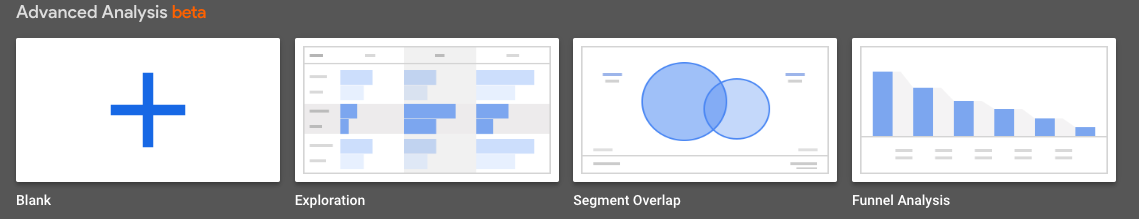 고급 분석은 기본 구글 애널리틱스 인터페이스 외에도 보다 심층적이고 정교한 데이터 탐색을 위한 다양한 메커니즘을 제공합니다. 주로 보고 및 시각화 플랫폼으로 사용되는 데이터 스튜디오(Data Studio)와 보통 임시 분석 용도로 사용되는 구글 애널리틱스 맞춤 보고 기능 사이의 교차점으로 생각할 수 있습니다.
