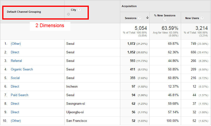 - “Dimensions”나 “Metrics”에 대한 필터링이 모두 가능함