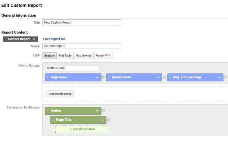 게시 사이트 작업 시, 항상 ‘작성자’로 시작하는 맞춤 탐색 보고서를 설정하고 다음 페이지 제목을 아래에 배치했습니다. 이렇게 하면 모든 작성자와 페이지뷰 측정 항목을 비교할 수 있으며, 작성자의 이름을 클릭하여 그들이 작성한 모든 페이지와 각 페이지별로 구분된 측정항목을 볼 수 있습니다. 또한 광고 노출수, 비디오 재생 및 다운로드 수와 같은 측정항목을 기록하는 경우, 맞춤 측정항목을 이러한 보고서에 추가할 수도 있습니다.