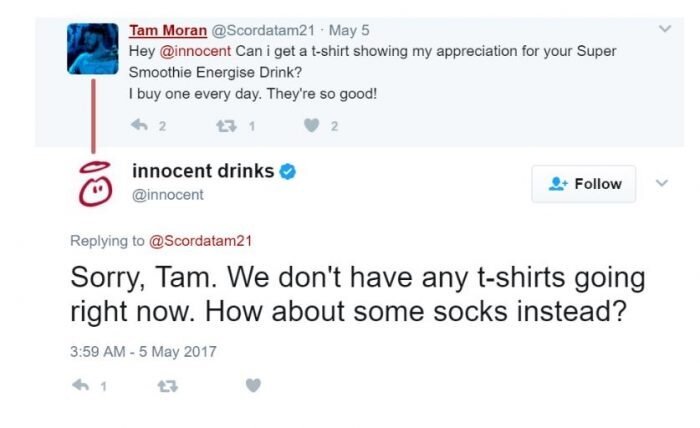 여기 가벼운 마음을 가진 브랜드가 트위터에서 얼마나 재미 있을지에 대한 가능성을 강조한 몇 가지 트윗이 있습니다.