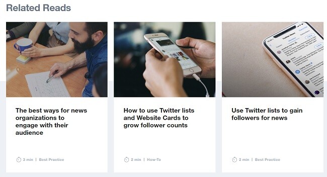 이 사이트는 트위터를 처음 사용하는 사람들이나 이용 가능한 옵션을 최대한 활용하고자 하는 사람들을 위한 유용한 가이드들을 많이 포함하고 있습니다. 예를 들어, 뉴스 미디어 섹션에는 뉴스 속보를 다루는 방법, 팔로워를 확보하는 방법, 참여율을 높이는 방법에 대한 가이드가 있습니다.