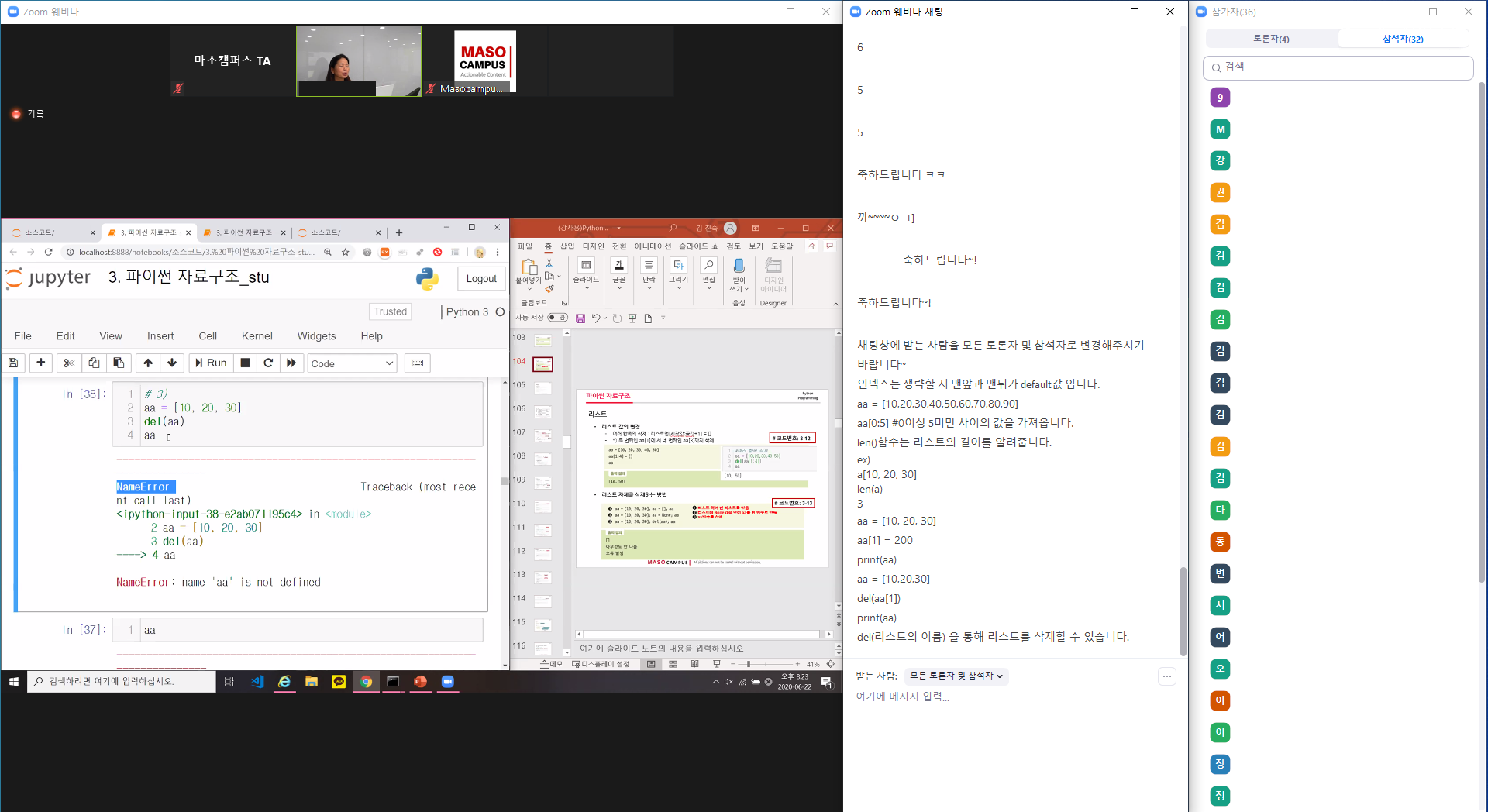 업무에 도움이되는 파이썬 입문 웨비나 수업입니다. 3일차에는 자료구조(리스트, 튜플, 딕셔너리) 및 인덱싱, 슬라이싱에 대해 강의를 진행하였습니다!