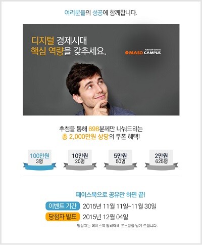 Read More[news] 마소캠퍼스, 페이스북 이벤트로 교육비 2000만원 쏜다