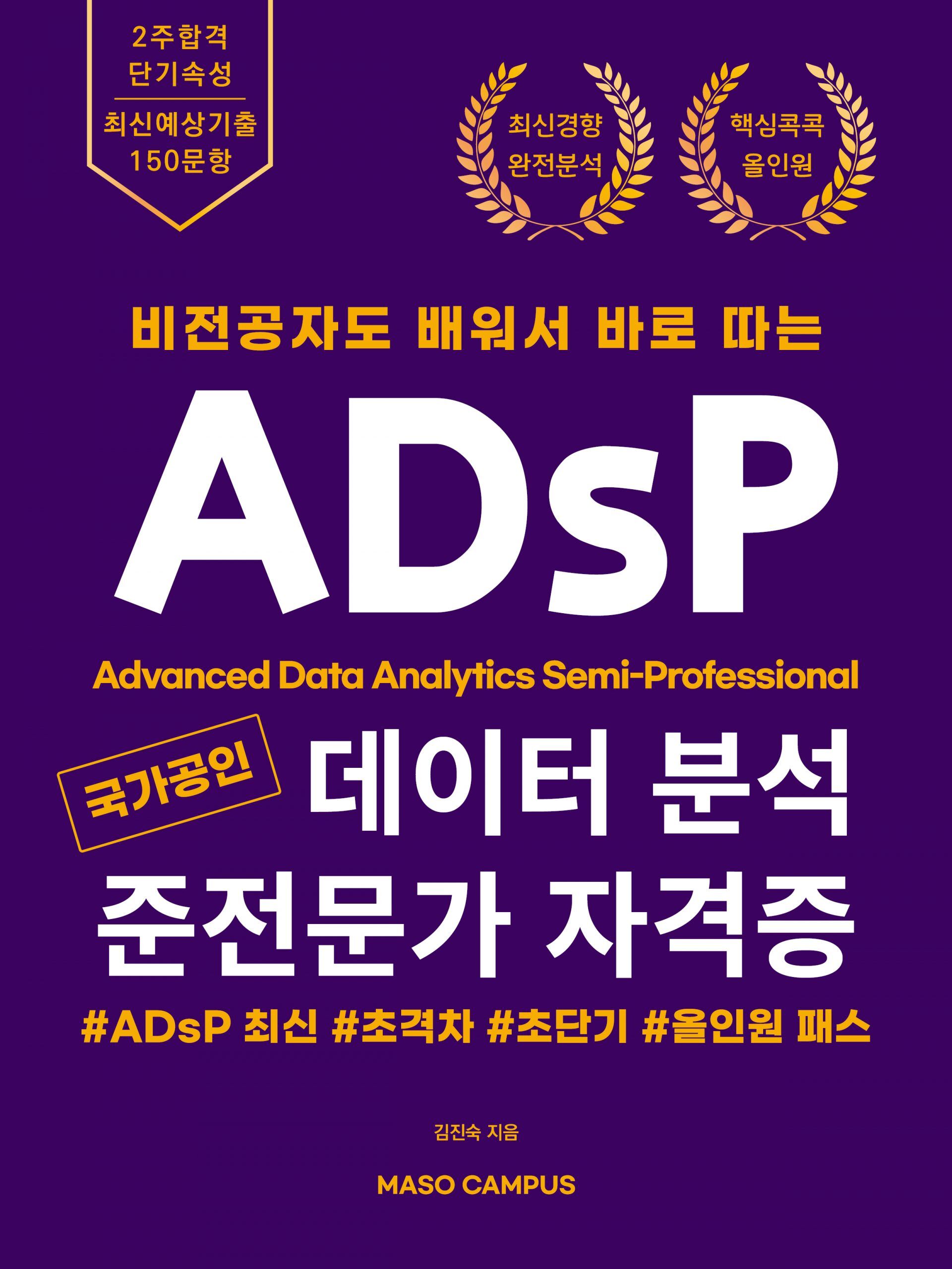 데이터 분석 준전문가(ADsP: Advanced Data Analytics Semi-Professional)란 데이터 이해에 대한 기본지식을 바탕으로 데이터 분석 기획 및 데이터 분석 등의 직무를 수행하는 실무자를 말합니다.