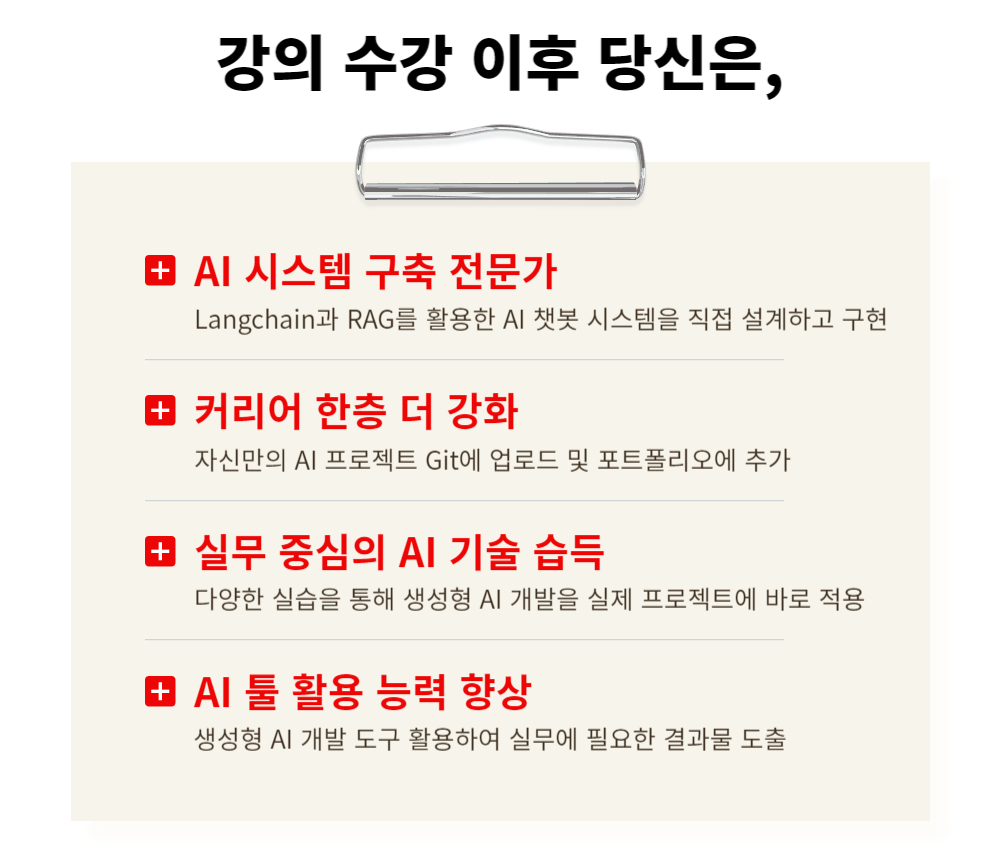 – 생성형 AI 개발로 커리어를 증진시키고, 포트폴리오에 기재하여 자신의 경쟁력을 높이고 싶은 개발자