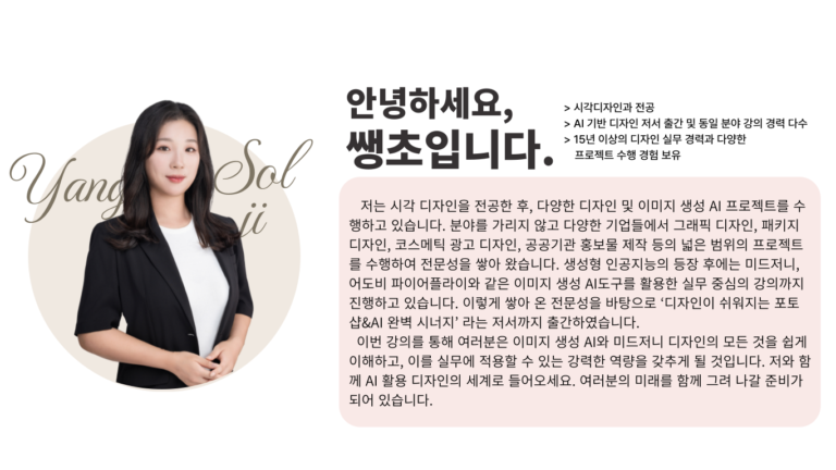 미드저니나 포토샵만 다루는 게 아니라 브랜딩 기획, 배너 제작, SNS 광고 이미지까지 응용할 수 있어 정말 유용해요.