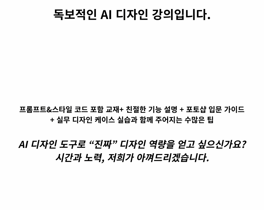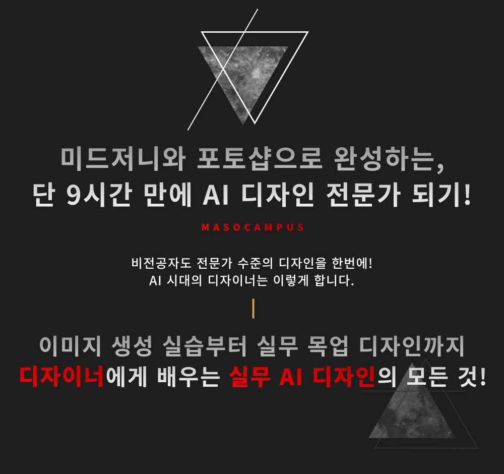 지금 미드저니와 포토샵으로 상위 1% 디자이너가 되어보세요!