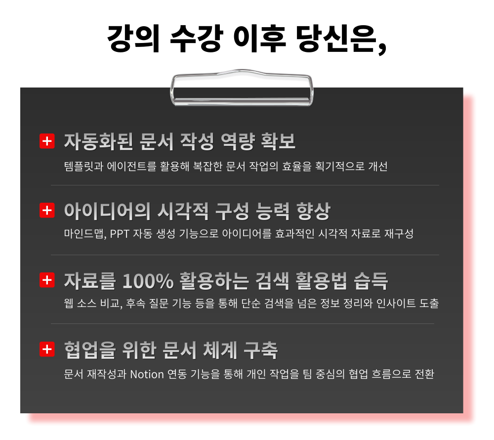 또한 템플릿 활용, 에이전트 설정, Notion 연동 등으로 반복 업무를 줄이고 전략적 사고에 집중할 수 있는 환경을 만들어줍니다.