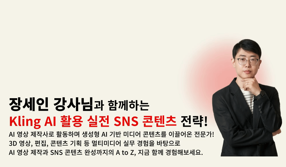 Kling AI로 더 효율적인 영상 콘텐츠 제작을 시작하는 생성형 AI 영상 제작 입문 강의입니다.