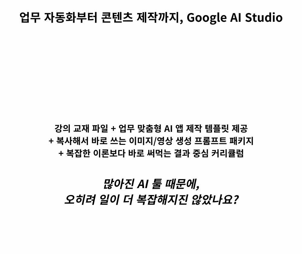 Gemini 기반 Google AI Studio의 핵심 기능을 단계별로 배우며, AI와 함께 일하는 실무 루틴 완성