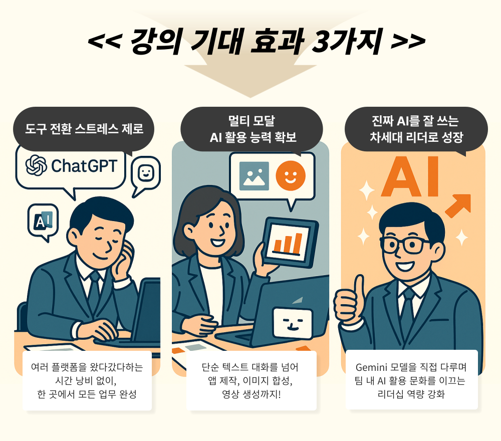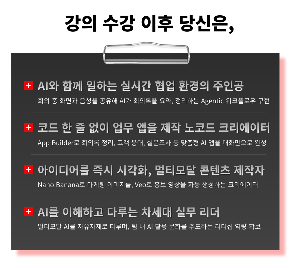 수강 직후 회의록·보고서·콘텐츠 제작 루틴에 바로 적용하는 실무 중심 AI 혁신 커리큘럼