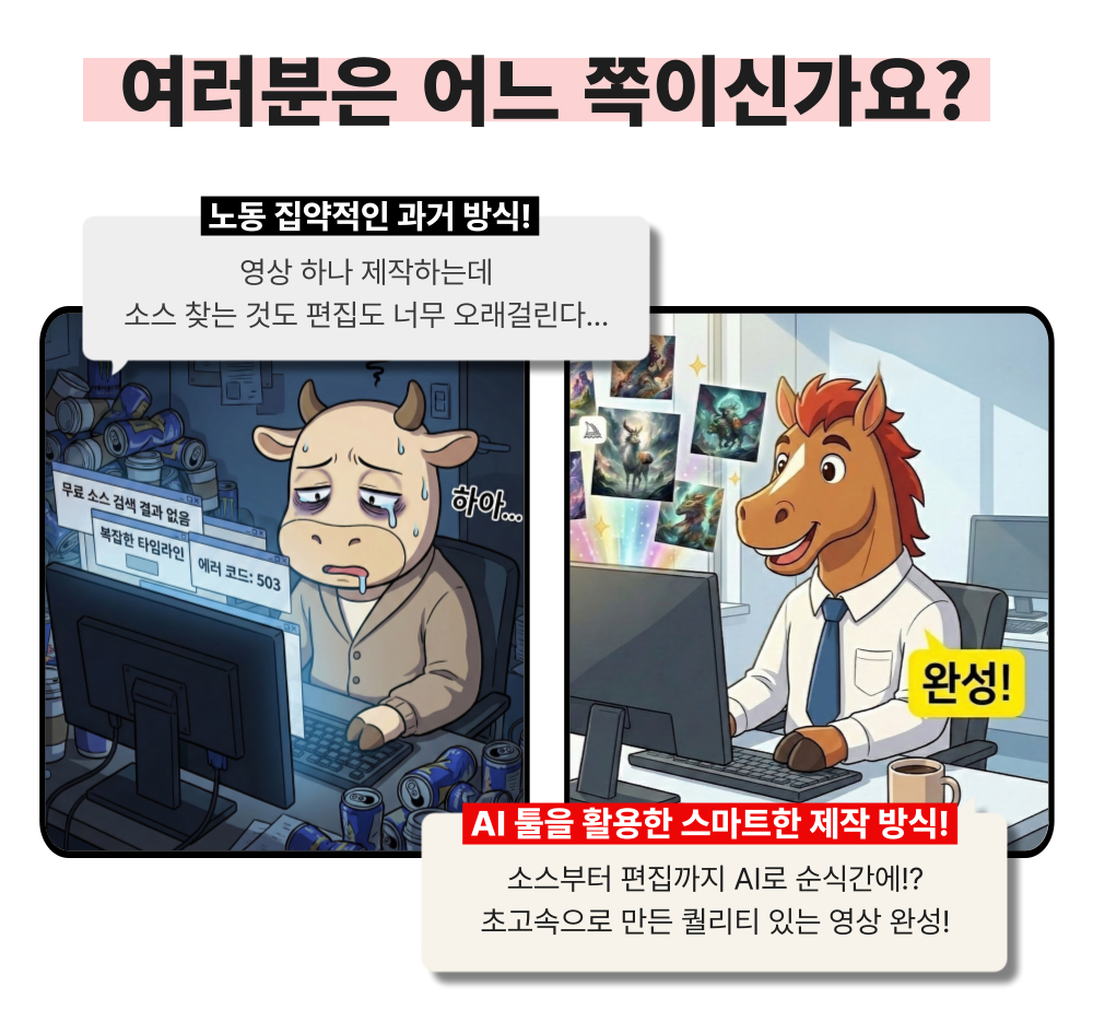 이미지 하나 만드는 것도 어려운데, 이제는 영상까지 만들라니 부담스럽게 느껴지시죠?
