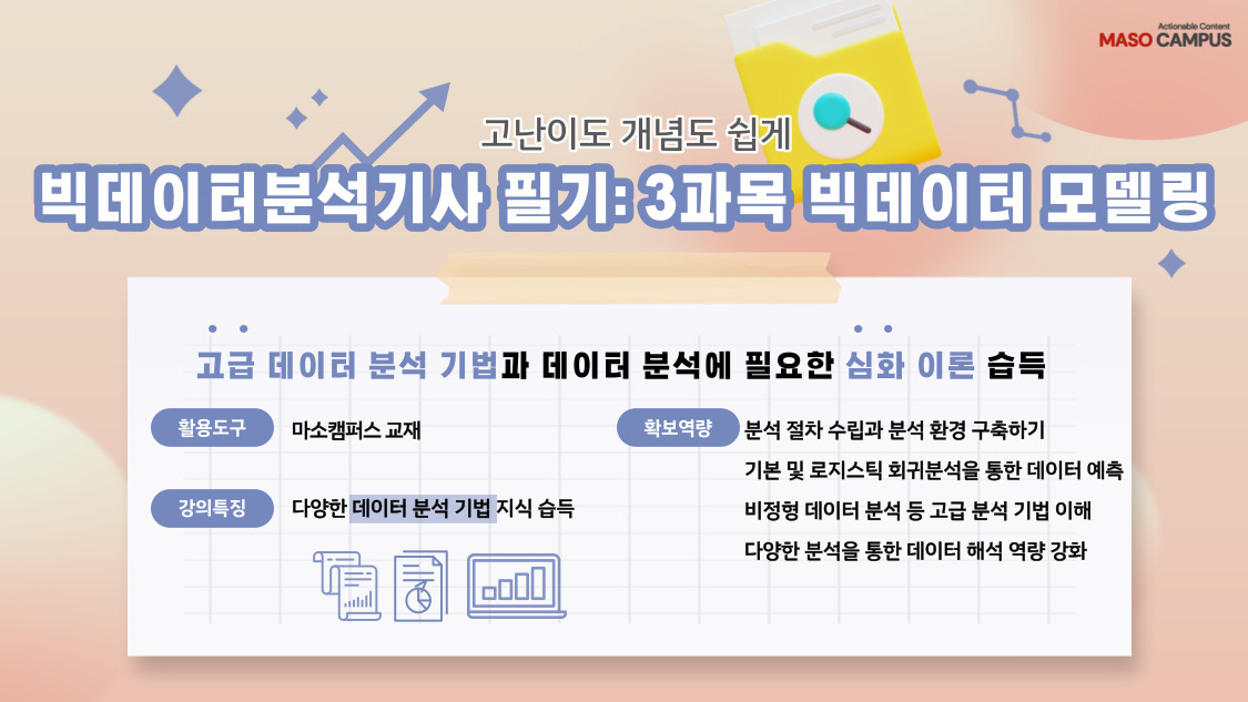 마소캠퍼스의 빅데이터 분석기사 필기 3과목 강의는 바로 그 시작입니다!