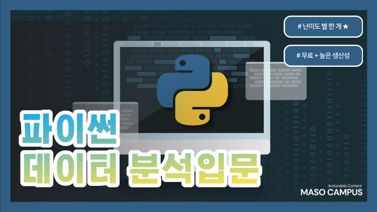 마소캠퍼스의 <파이썬 데이터분석 입문> 강의를 수강하면, 프로그래밍에 대한 두려움을 떨치고, 파이썬의 기본적인 모든 것을 학습하실 수 있습니다.