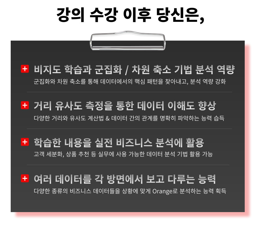 – 군집화 & 차원 축소 기법에 대한 탄탄한 이론 및 실습