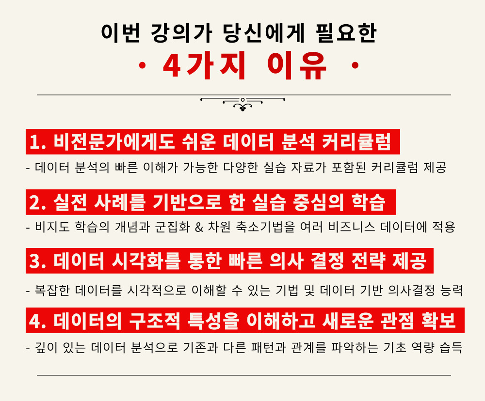 비즈니스 현장에서 데이터 기반 의사결정을 주도하고 싶다면, 지금 바로 이 강의를 수강하세요.