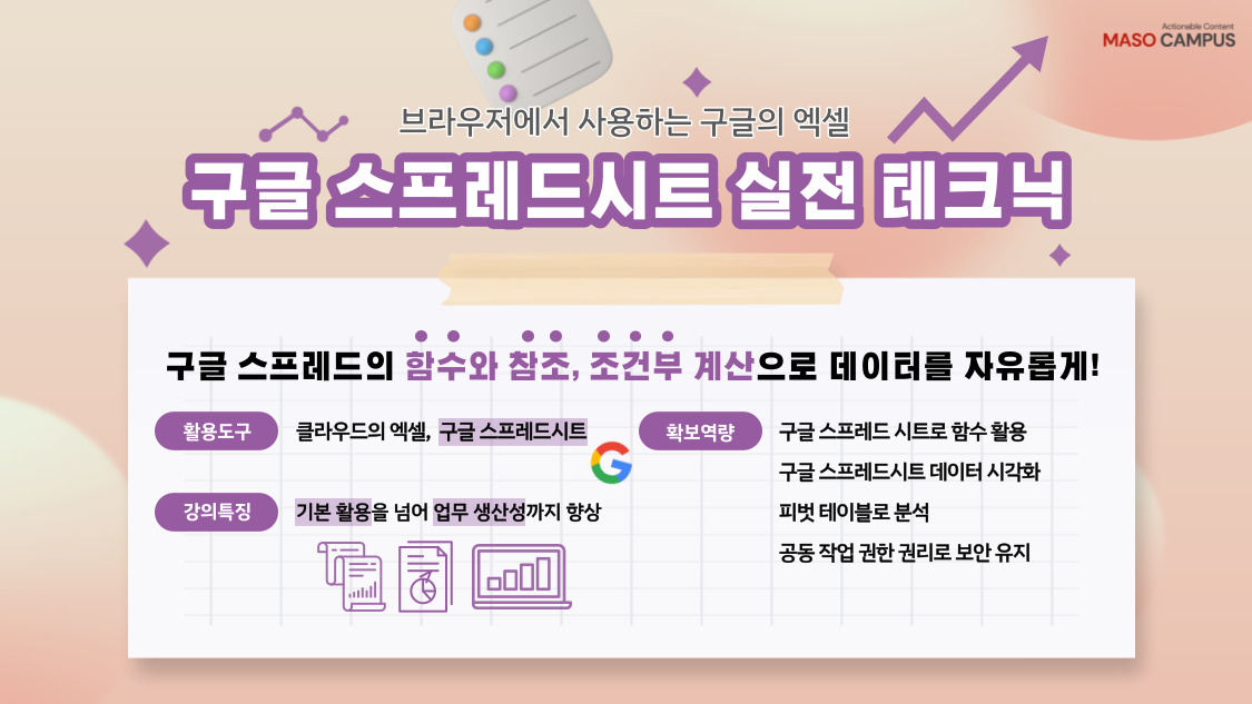 마소캠퍼스의 <구글 스프레드시트 실전 테크닉> 강의를 수강하시면,
