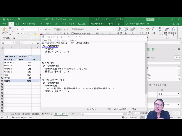![[VAP][onc66] XLS_B072 DAX 활용 - 피벗테이블 값에 고객 구매후기 표시](http://dev3.masocampus.com/wp-content/uploads/2022/07/VAPonc66-XLS_B072-DAX-활용-피벗테이블-값에-고객-구매후기-표시.gif)