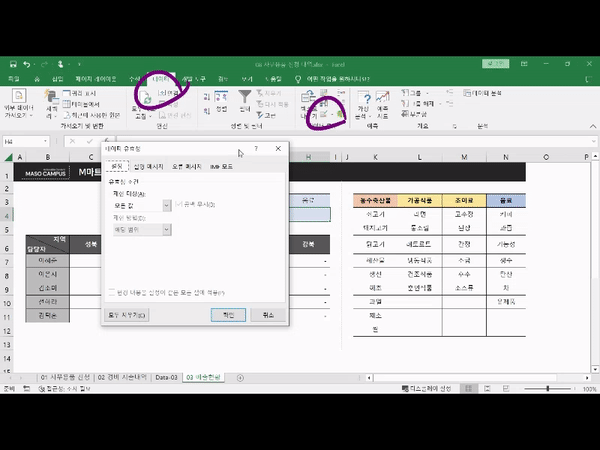 [onc77] XLM061 데이터 유효성 검사로 목록 만들기 00:30:54