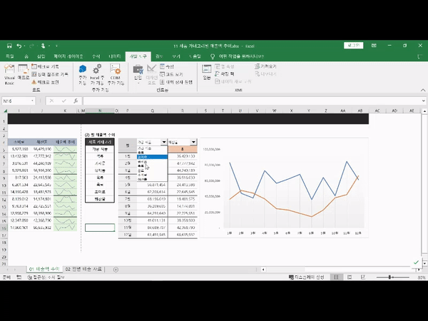 엑셀에서 단추를 만들어 옵션을 선택하거나 버튼을 만들어 원하는 동작을 수행하는 양식컨트롤과 매크로를 연결하면 내가 필요한 데이터만 뽑아 조회하거나 실시간 매출 보고서 등을 만들어 복잡한 데이터 속에서 제대로 된 인사이트를 도출하실 수 있습니다.