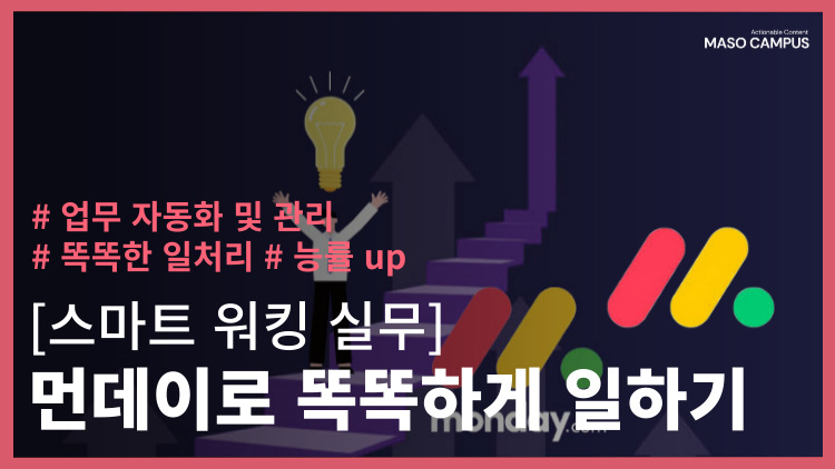 이러한 문제를 해결하기 위해, 마소캠퍼스는 ‘스마트 워크 마스터: 노션과 먼데이, 구글 캘린더까지 업무 혁신 팩’을 구성하였습니다.