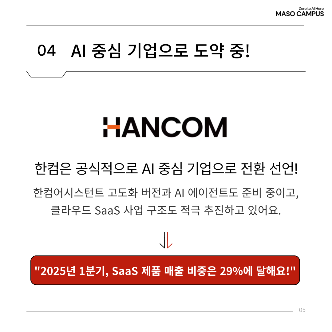한컴은 이제 AI 중심 기업으로 도약 중이에요!