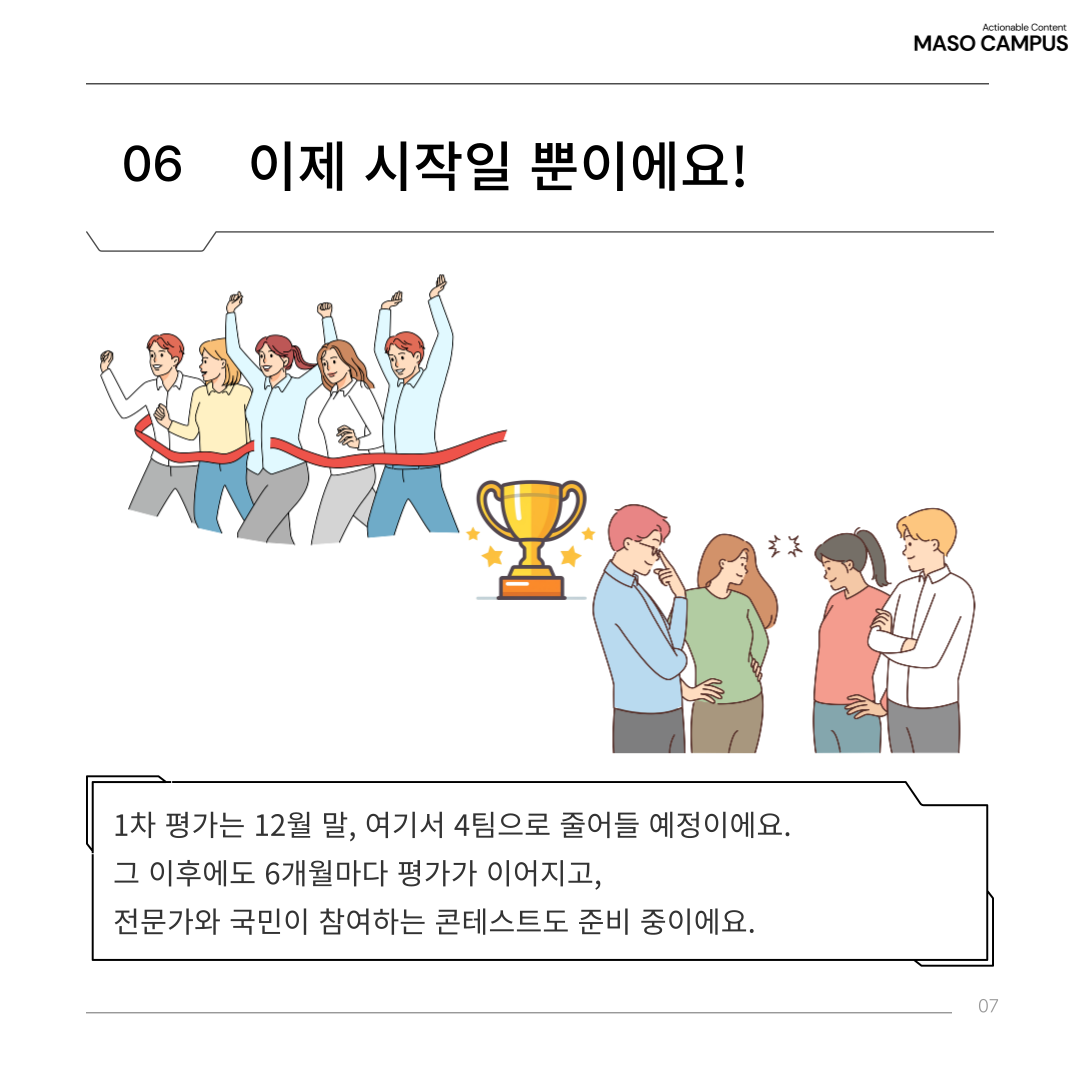 12월 말에는 1차 평가를 통해 5팀 중 4팀만 살아남게 됩니다.