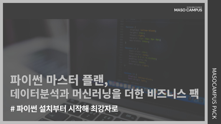 파이썬 마스터 플랜, 데이터분석과 머신러닝을 더한 비즈니스 팩 총 4개 묶음 강의 / 295개 수업 무제한(평생수강)파이썬 설치부터 시작해, 어렵고 복잡한 이론이 아닌 쉽고 재미있는 실습 과정으로 실무 최강자로 거듭나보세요! |