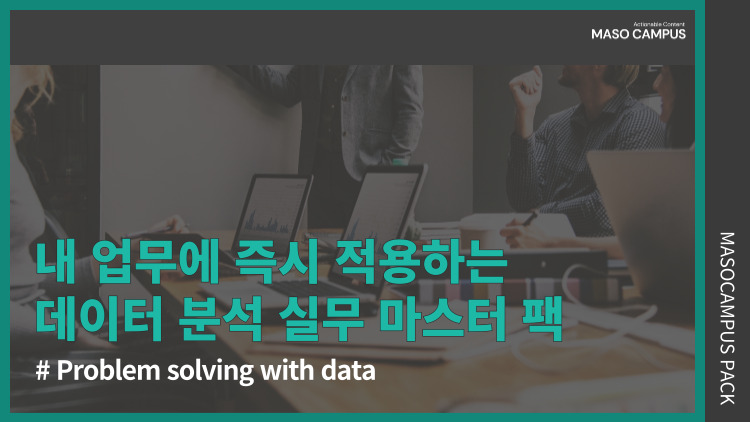 내 업무에 즉시 적용하는 데이터 분석 실무 마스터 팩 총 5개 묶음 강의 / 111개 수업 무제한(평생수강)비즈니스 애널리틱스 패키지로 우리 조직의 문제를 해결할 인사이트 도출 능력을 키워보세요! |