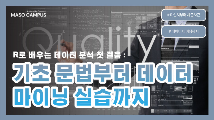 데이터에 관한 핵심 이론지식을 습득하고, 나아가 통계 전문 분석 도구인 R을 활용한 데이터 분석에 관한 심화된 지식까지 학습해보자!