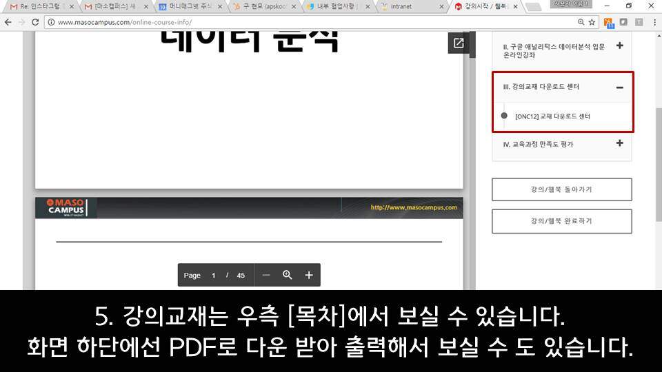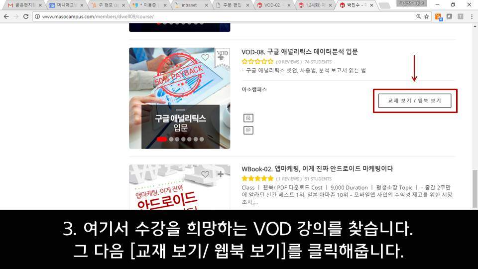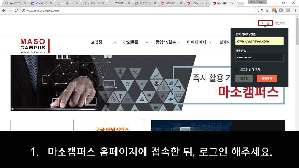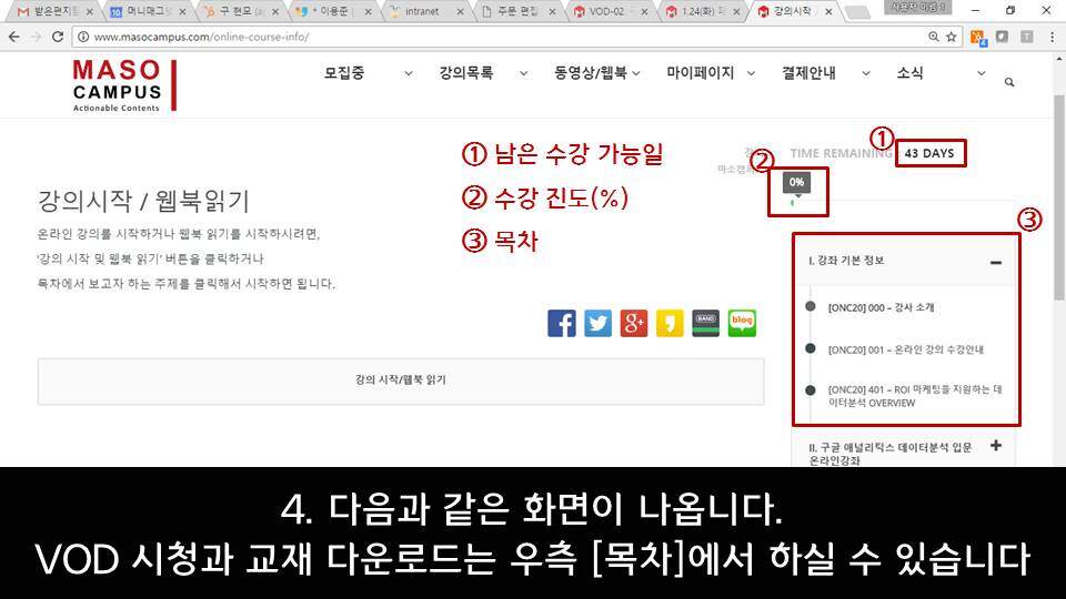 마소캠퍼스 VOD 수강 및 교재 다운로드 안내 – PC